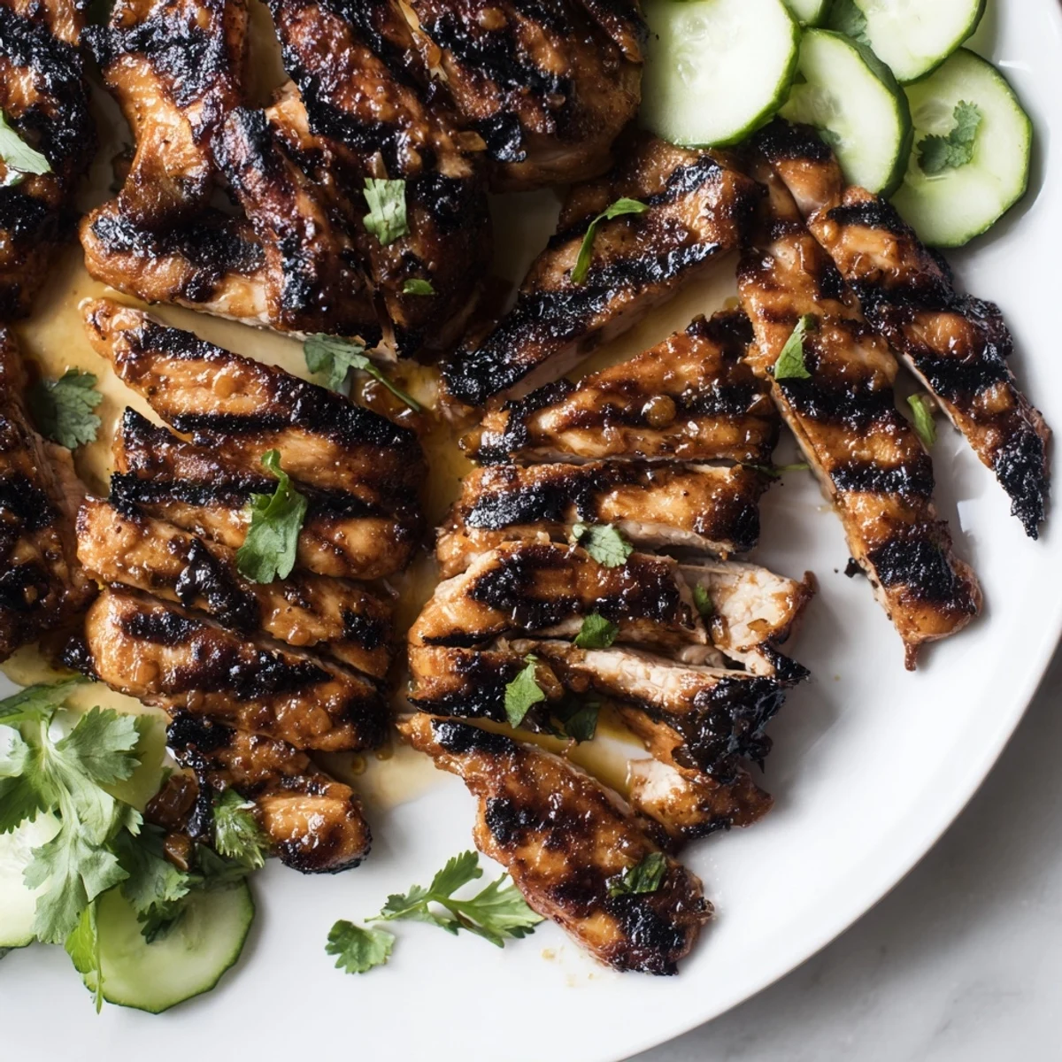 This Vietnamese-style grilled chicken features juicy thighs marinated in a fragrant blend of lemongrass, garlic, shallots, fish sauce, and just a hint of sweetness from brown sugar. The chicken absorbs these bold Southeast Asian flavors during a minimum one-hour soak before hitting the grill. High heat creates beautiful char marks while sealing in moisture, resulting in tender, succulent meat with crispy edges. Serve with fresh herbs, lime wedges, and steamed rice for a complete meal that brings the vibrant tastes of Vietnam to your table.