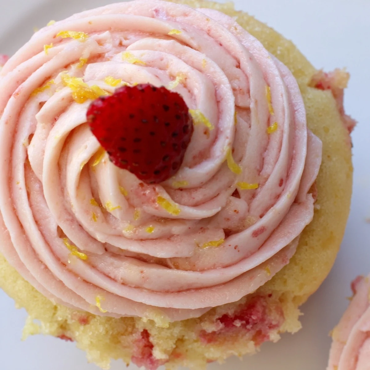 - Pipe or spread the buttercream onto each cooled cupcake. Top with fresh strawberry slices or a pinch of lemon zest if you want that extra pop of color and flavor.